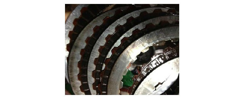 检修过程:将变速器解体后并没有直观的从机械部件上看出任何问题。仅仅是有一组离合器摩擦片轻微的烧蚀(见图1),其它元件良好。由于没有这方面的资料因此也不知道这个烧蚀的离合器是控制那几个档位的,也不知道前进档和倒档是不是跟这个元件有关。但不管怎样既然有烧损也只能把它换掉再说,由于车辆及变速箱都比较新因此从市面上还很难找到全新的零散配件,最后几经周折总算找到一个离合器鼓总成。